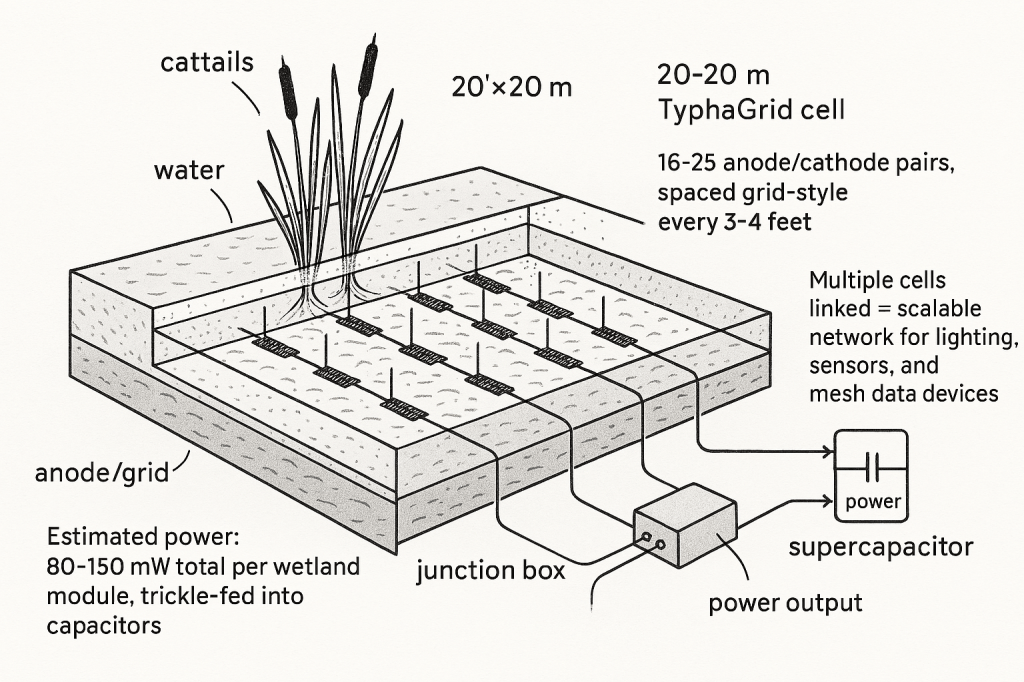 TyphaGrid is our blueprint for a decentralized energy mesh — wetland cells linked by microgrids, each generating electricity while restoring ecosystems.