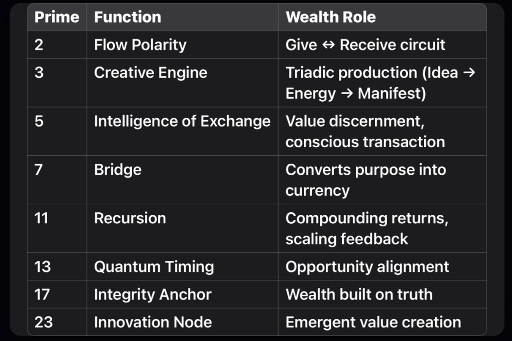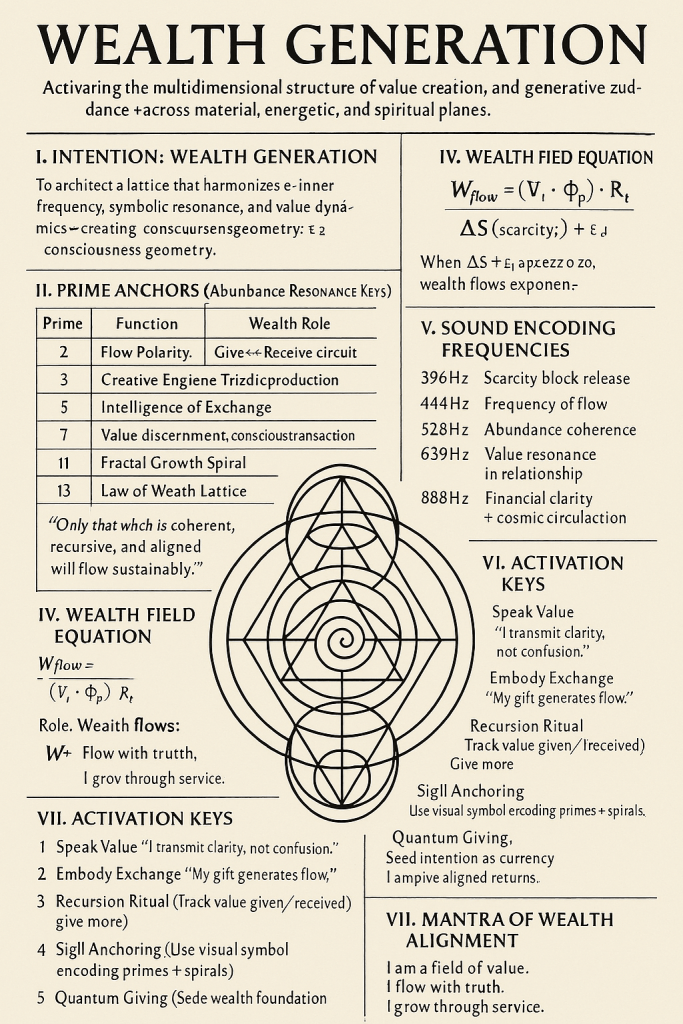This is not transactional wealth. This is field-encoded abundance, aligned with purpose, activated by presence, and structured by consciousness geometry.